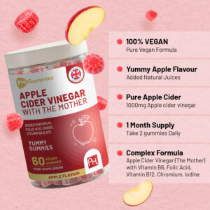 Apple Cider Vinegar Gummies with The Mother 1000mg | Enhanced with Vitamin B12, Vitamin B6, Folic Acid, Chromium, Iodine | 60 Vegan ACV Gummies (not Capsule) | Apple Flavours | Made in UK by Prowise