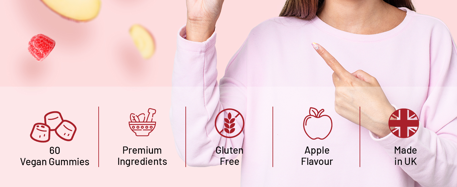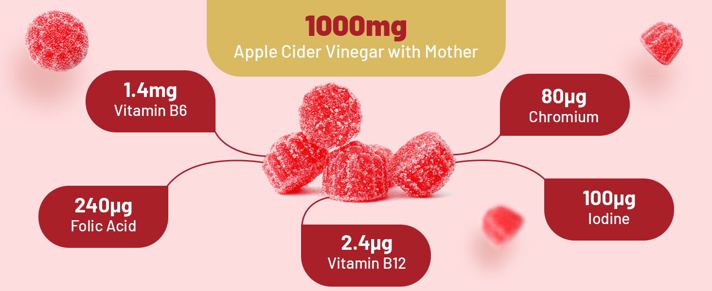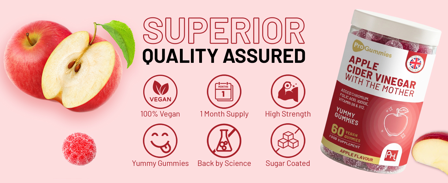 Apple Cider Vinegar Gummies with The Mother 1000mg | Enhanced with Vitamin B12, Vitamin B6, Folic Acid, Chromium, Iodine | 60 Vegan ACV Gummies (not Capsule) | Apple Flavours | Made in UK by Prowise