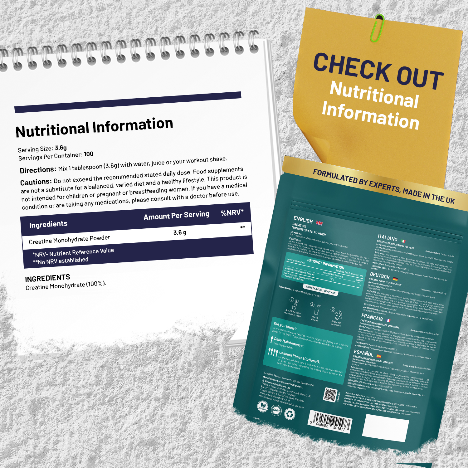 100% PURE CREATINE MONOHYDRATE POWDER: This product contains only 100% creatine monohydrate with no added fillers, flavours, or unnecessary ingredients. The micronised format helps improve mixability, making it easy to blend into water, juice, or your preferred workout shake as part of your daily routine.