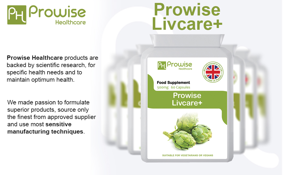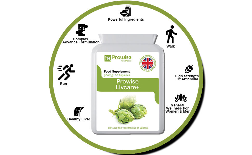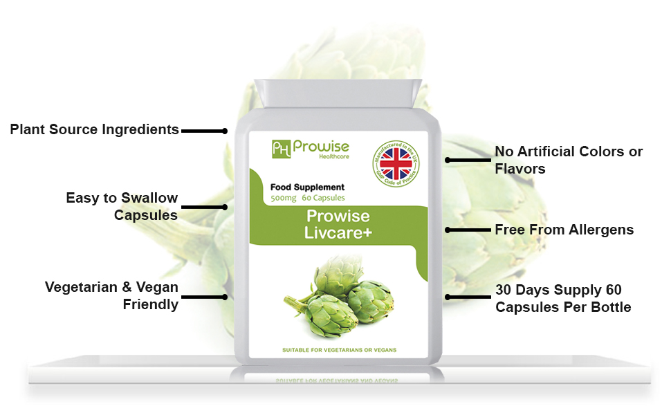 Livcare+ 500mg 60 Capsules–UK Manufactured | Gallbladder Supplements | Suitable for Vegetarians & Vegans by Prowise