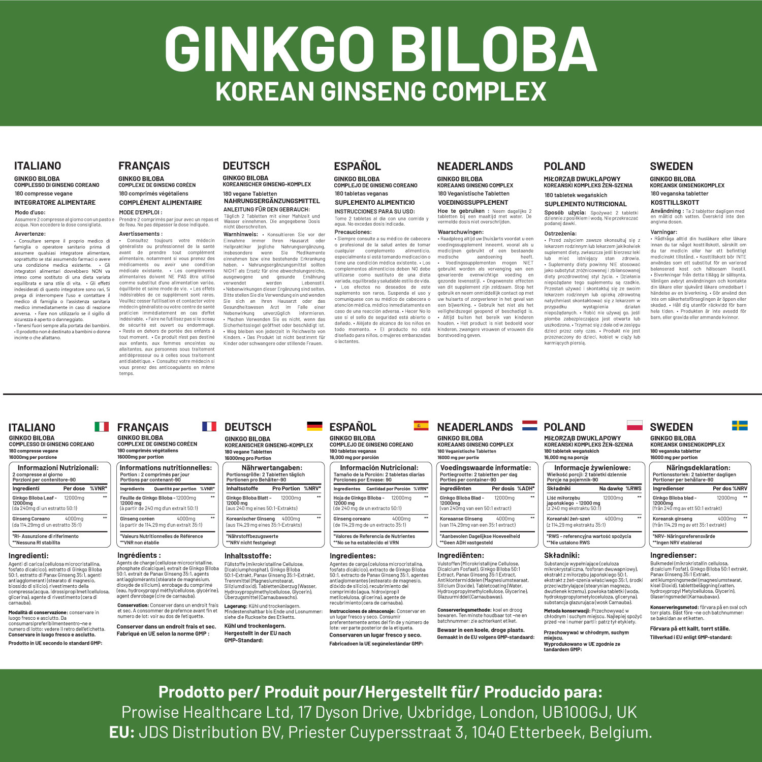 Bulking Agents (Microcrystalline Cellulose, Dicalcium Phosphate), Ginkgo Biloba 50:1 Extract, Panax Ginseng 35:1 Extract, Anti-Caking Agents (Magnesium Stearate, Silicon Dioxide), Tablet Coating (Water, Hydroxypropyl Methylcellulose, Glycerine), Glazing Agent (Carnauba Wax).